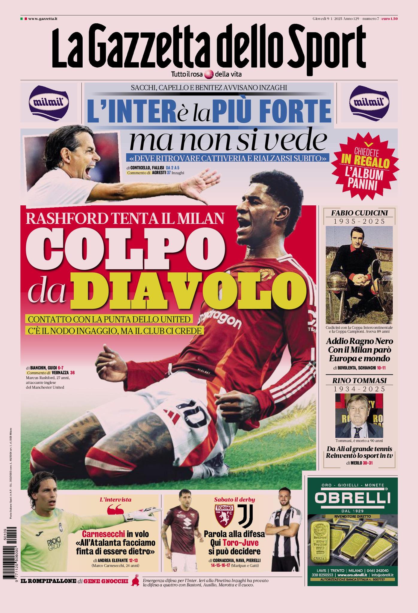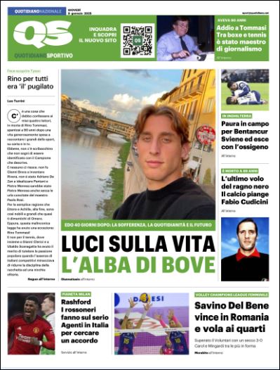 Queste le prime pagine di Qs, Gazzetta, CorSport, Stadio e Tuttosport in edicola questa mattina, giovedì 9 gennaio 2025