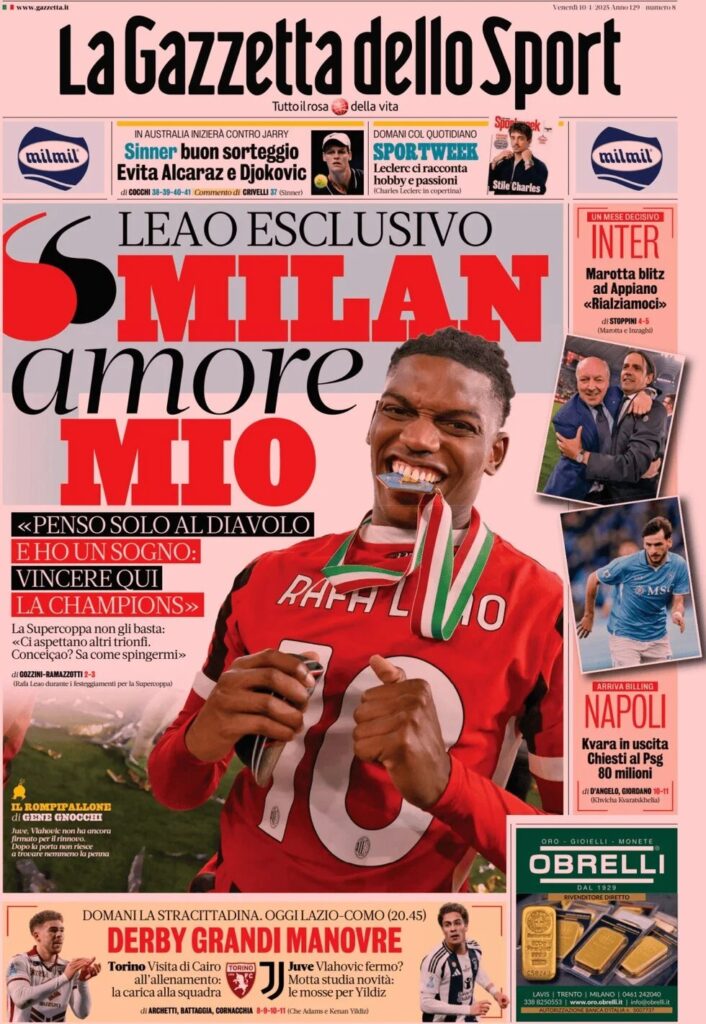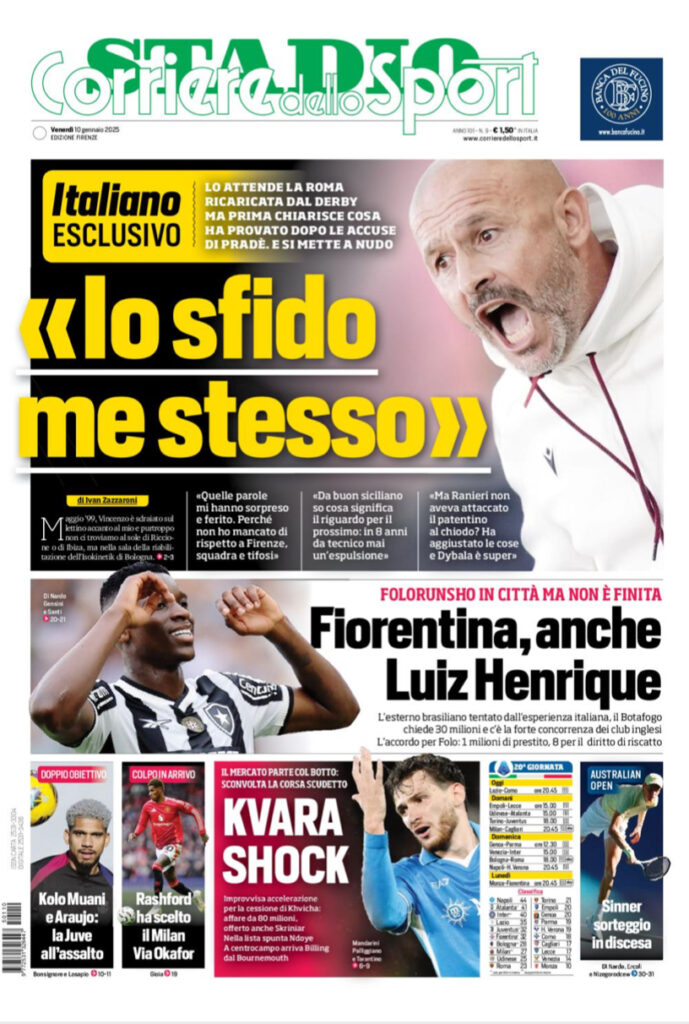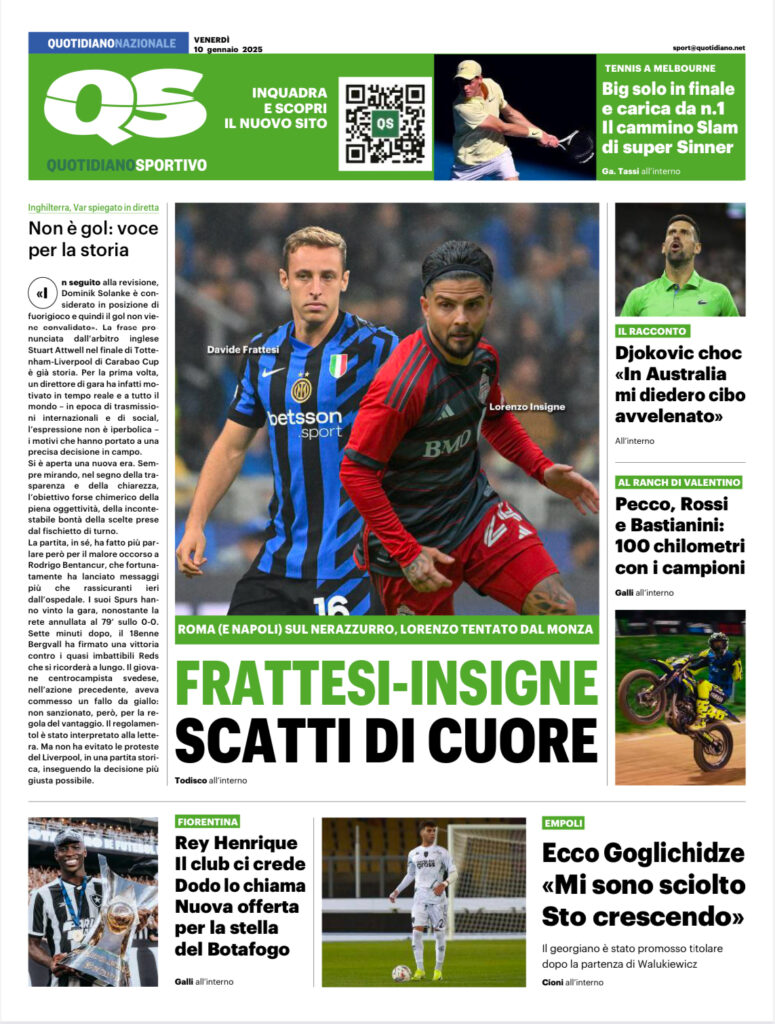 Queste le prime pagine di QS, Gazzetta, CorSport, Stadio e Tuttosport in edicola questa mattina, venerdì 10 gennaio 2025