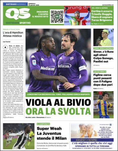 Quotidiani: le prime pagine di Qs, Gazzetta, CorSport, Stadio e Tuttosport in edicola questa mattina, domenica 19 gennaio 2025