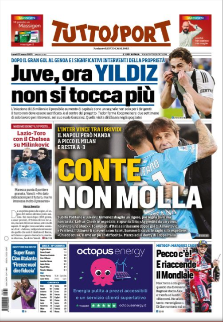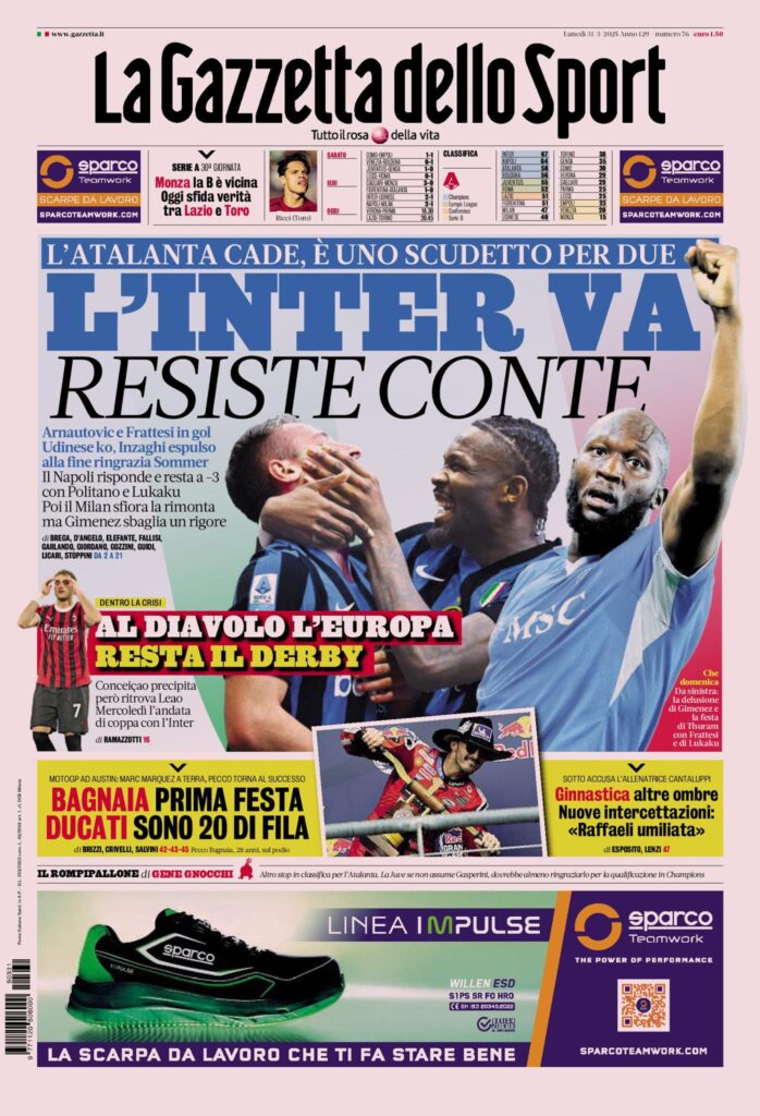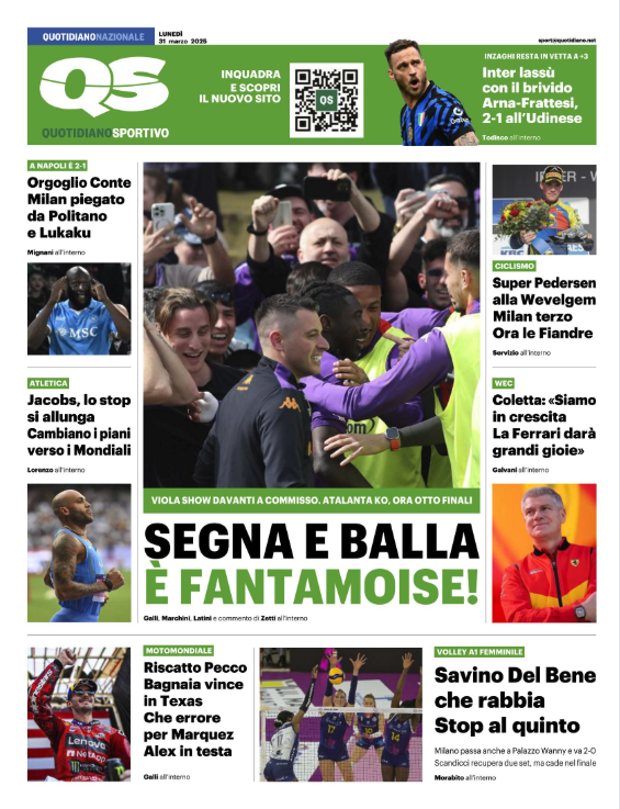 Queste le prime pagine di Qs, Gazzetta, CorSport, Stadio e Tuttosport in edicola questa mattina, lunedì 31 marzo 2025