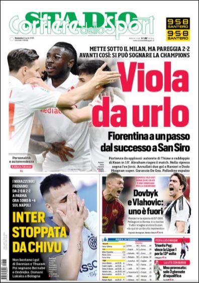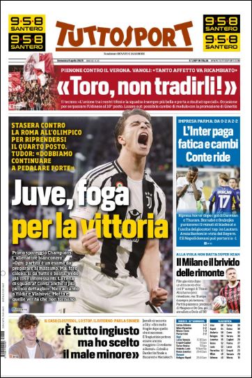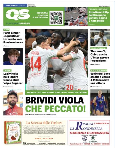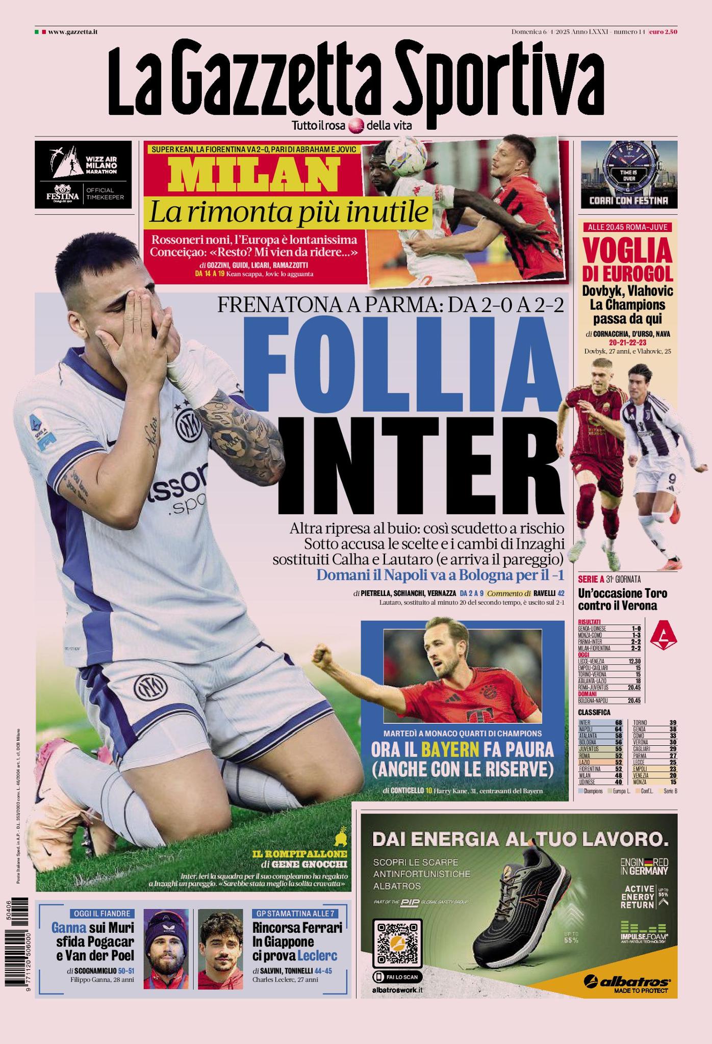 Queste le prime pagine di Qs, Gazzetta, CorSport, Stadio e Tuttosport in edicola questa mattina, domenica 6 aprile 2025