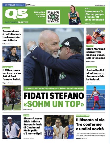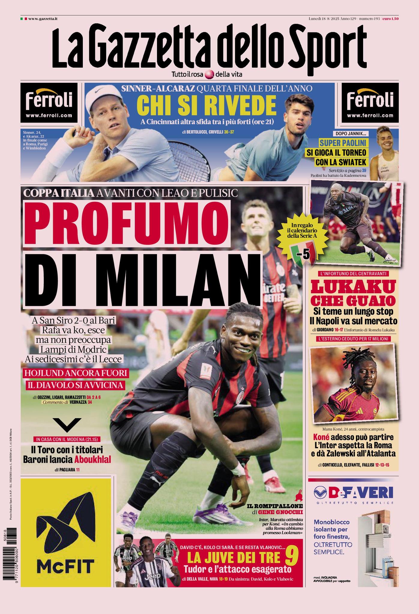 Queste le prime pagine di Qs, Gazzetta, CorSport, Stadio e Tuttosport in edicola questa mattina, lunedì 18 agosto 2025