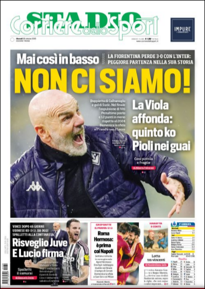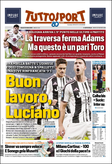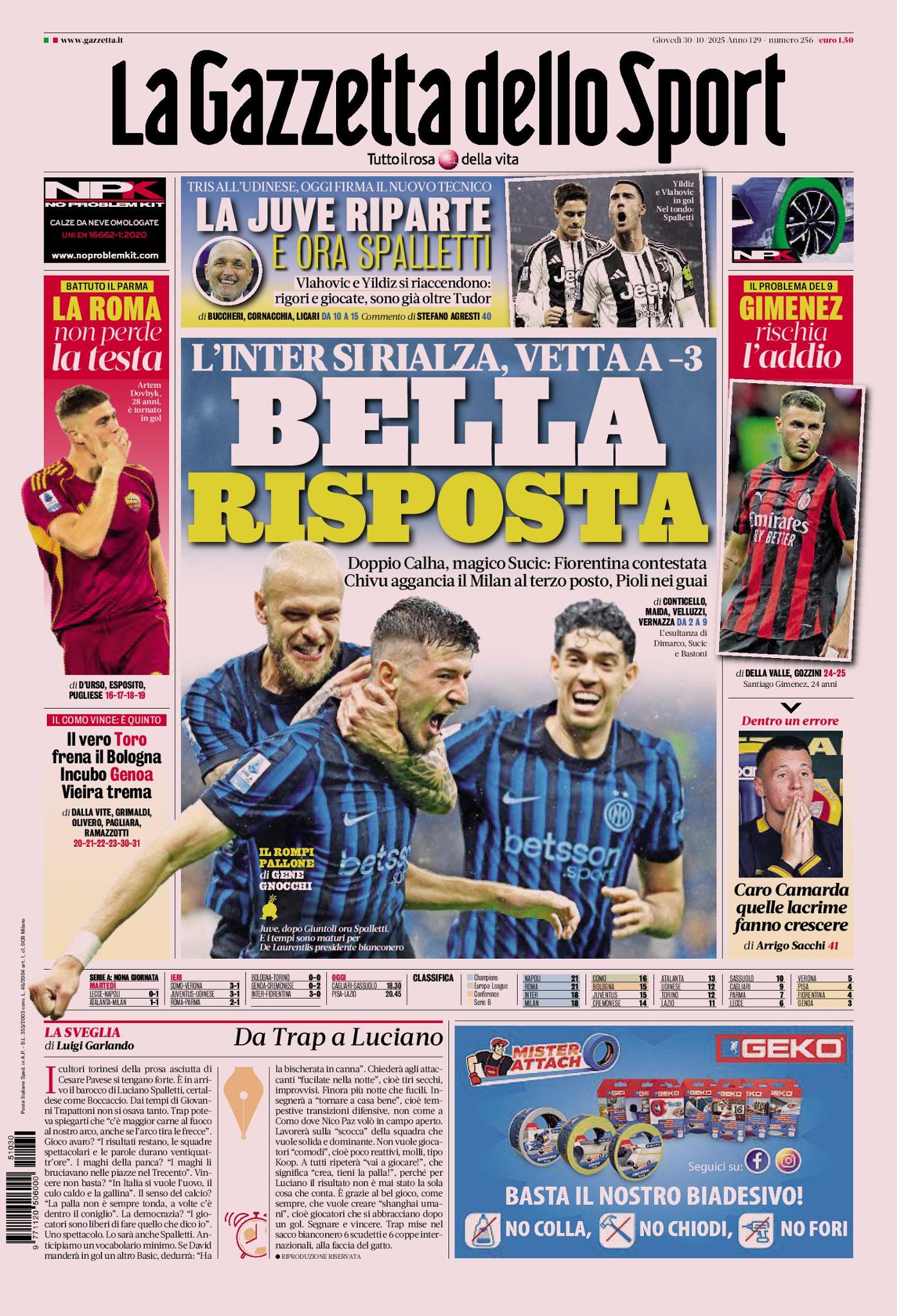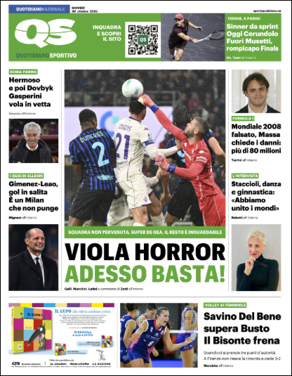 Queste le prime pagine di Qs, Gazzetta, CorSport, Stadio e Tuttosport in edicola questa mattina, giovedì 30 ottobre 2025