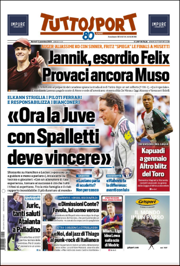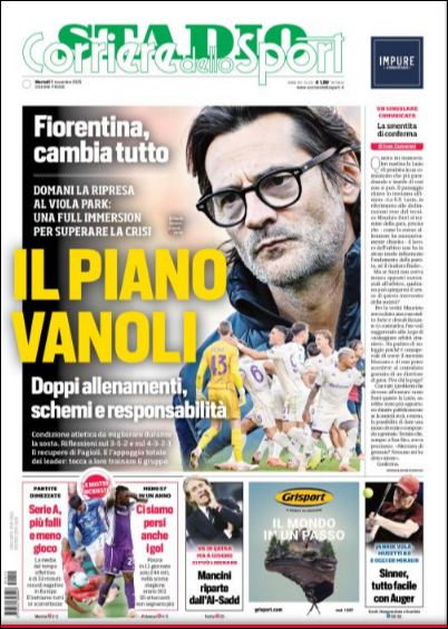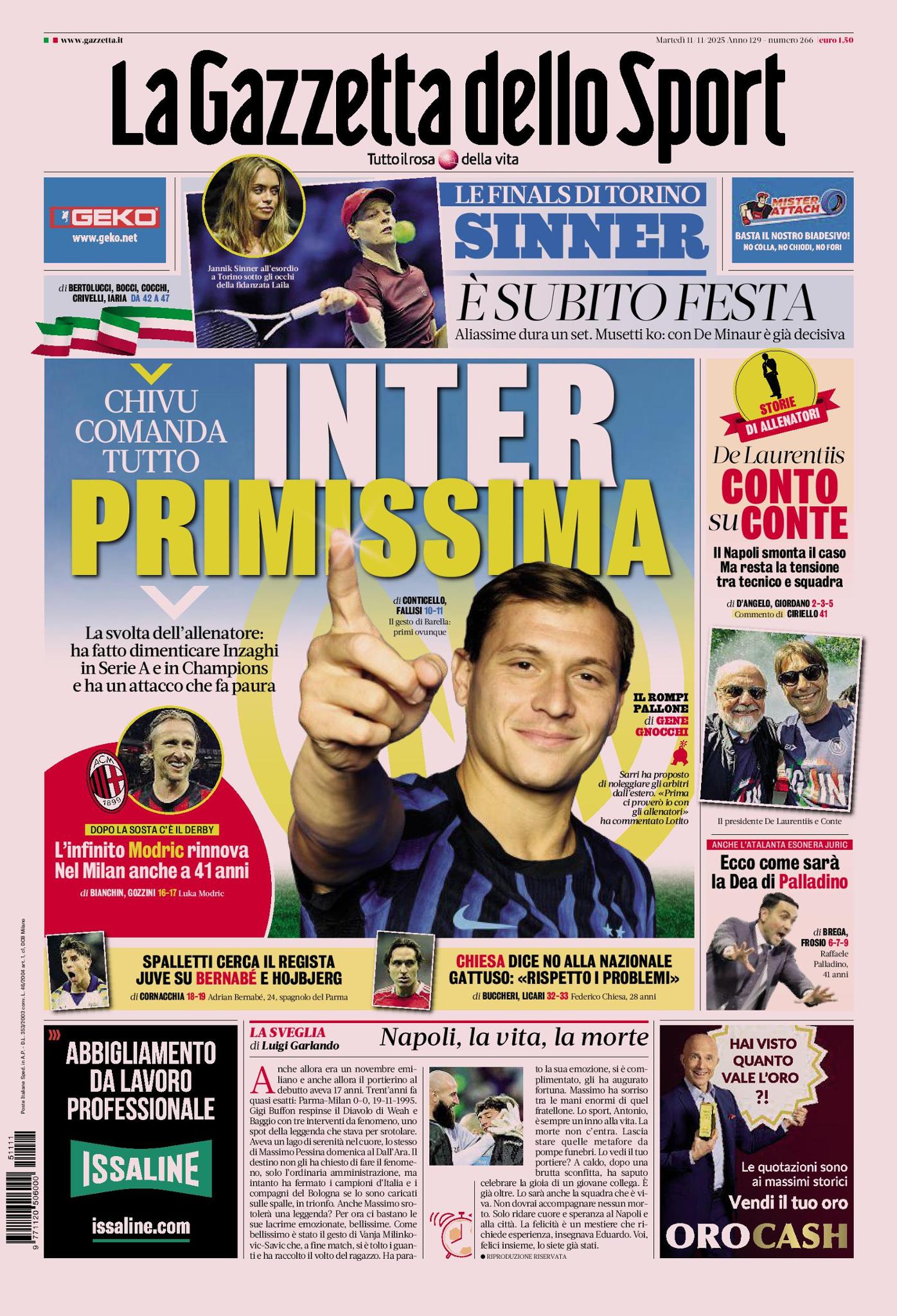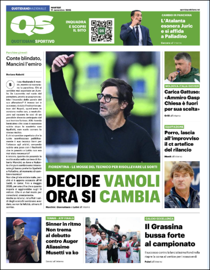 Queste le prime pagine di Qs, Gazzetta, CorSport, Stadio e Tuttosport in edicola questa mattina, martedì 11 novembre 2025