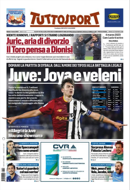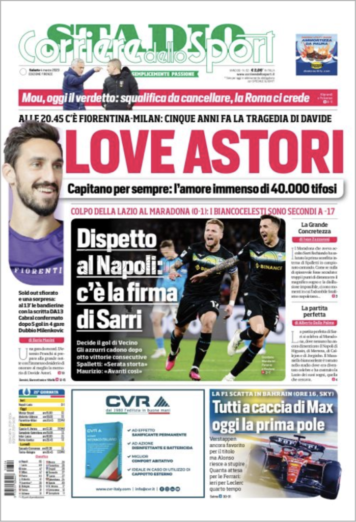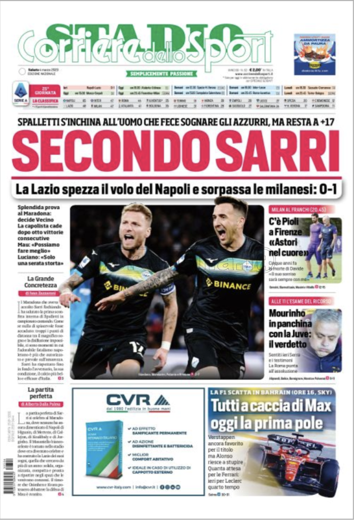 Queste le prime pagine di QS, Gazzetta, CorSport, Stadio e Tuttosport in edicola questa mattina, sabato 4 marzo 2023