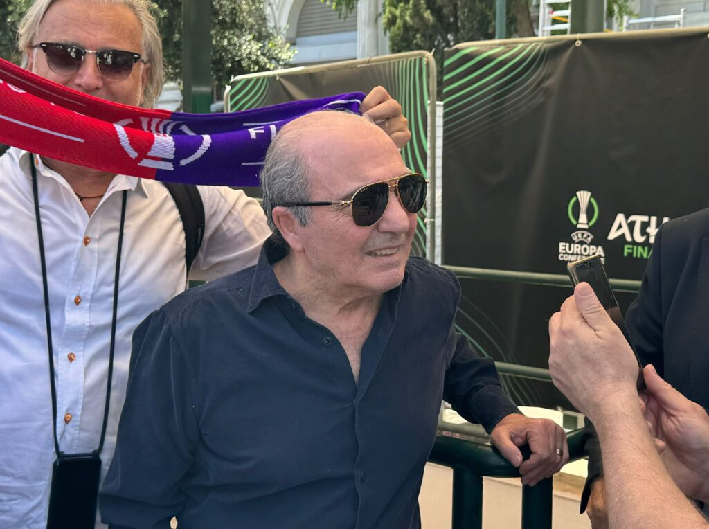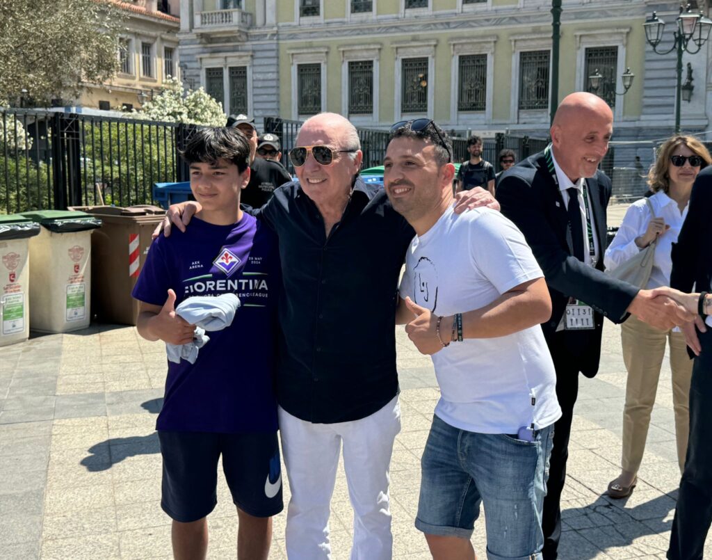 Il ritrovo dei tifosi della Fiorentina è nella Fan Zone allestita dalla Uefa ad Atene. Tanti giochi e attrazioni per passare il tempo in attesa dell’ingresso allo stadio. Già da questa mattina sono tanti i tifosi viola presenti e, come testimoniano le immagini di LaViola.it, è arrivato anche Rocco Commisso proprio per salutare i tifosi della Fiorentina.