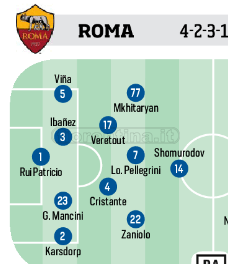 Pochi dubbi di formazione secondo i quotidiano di José Mourinho e la sua Roma, che oggi affronteranno all’Olimpico la Fiorentina. In porta Rui Patricio, dietro Karsdorp, Mancini, Ibanez e Vina, cerniera mediana composta da Veretout e Cristante, con Zaniolo, Pellegrini e Mkhitarayan a supporto di Shomurodov. Abraham ci sarà, ma partirà dalla panchina.