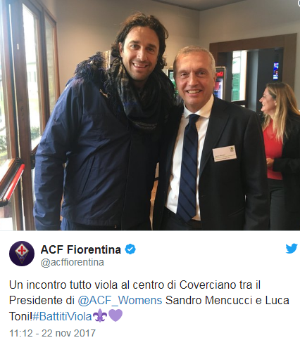 Il presidente della Fiorentina Women’s Sandro Mencucci, presente oggi a Coverciano per un Workshop sul calcio femminile, ha ritrovato Luca Toni, bomber viola a metà anni 2000 facendosi immortalare in questo scatto: