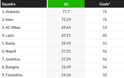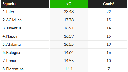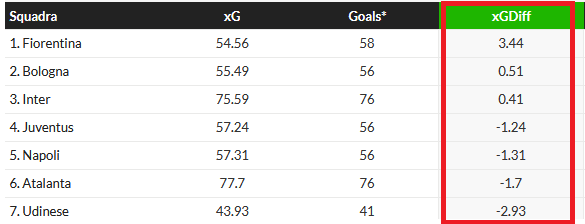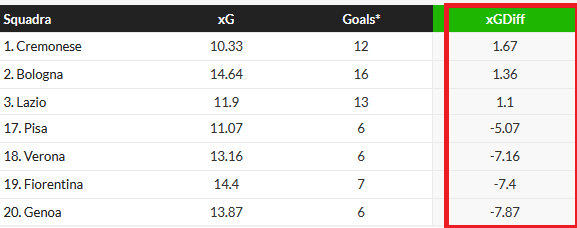 Dati disastrosi per la Fiorentina, sia dietro che davanti. Seconda peggior differenza tra xG e fatti. L’anno scorso il trend era opposto
