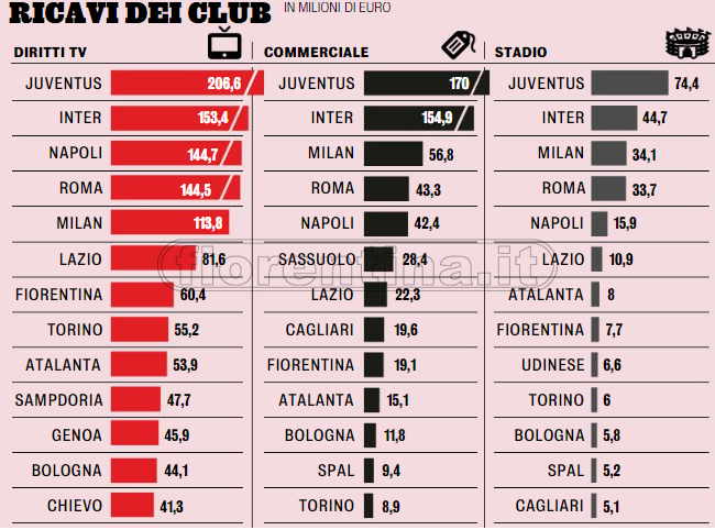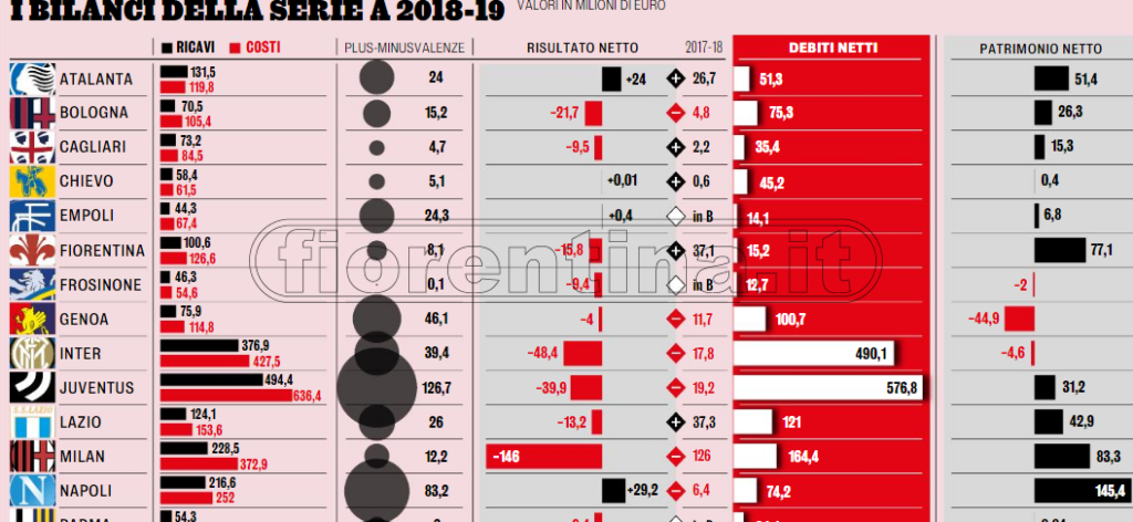 SISTEMA CALCIO GIA’ MALATO. Lunga inchiesta sui conti del calcio da parte della Gazzetta Dello Sport. I numeri fanno venire i brividi: già gravi prima ancora del virus con il rischio di scenari funesti se questo campionato venisse cancellato, specie in assenza di radicali interventi a sostegno.