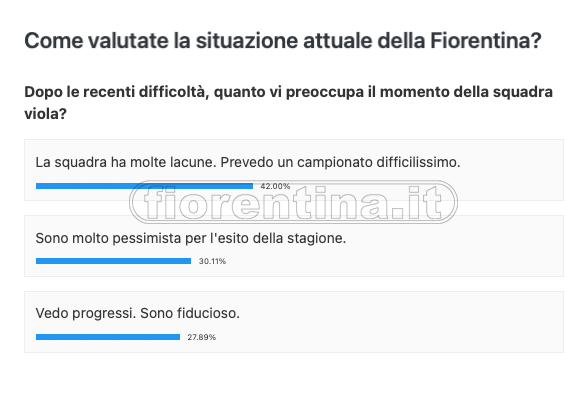 Il 30% dei votanti addirittura è molto pessimista per l’esito della stagione, prevedendo quindi un rischio retrocessione per i viola.