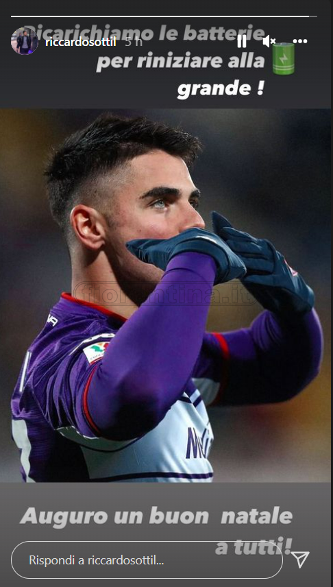 Riccardo Sottil, esterno della Fiorentina, sulle proprie storie Instagram ha voluto lasciare un pensiero sulla pausa per le festività natalizie che attende i viola. Queste le sue parole: “Ricarichiamo le batterie per riniziare alla grande! Auguro un buon natale a tutti!”.
