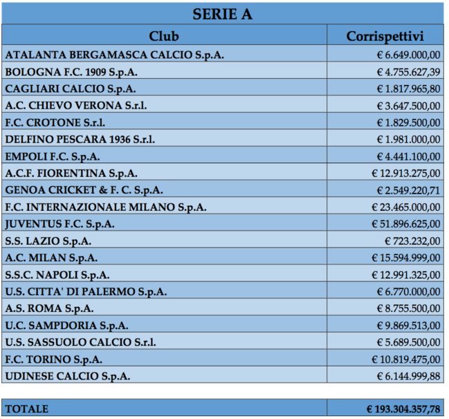 Calcio e Finanza, sito specializzato sul lato economico del calcio, fornisce una tabella che riporta quanto spendono per le commissioni e le intermediazioni dei vari procuratori le squadre di Serie A. La Fiorentina si trova al quinto posto in questa classifica, che tiene conto del periodo dal 1° gennaio al 31 dicembre 2016. Qui sotto la tabella completa fornita da Calcio e Finanza: