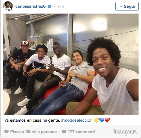 Carlos Sanchez attraverso il suo profilo ufficiale Instagram si ritrae nella sua Colombia per l’impegno con la Nazionale. Con lui l’ex...