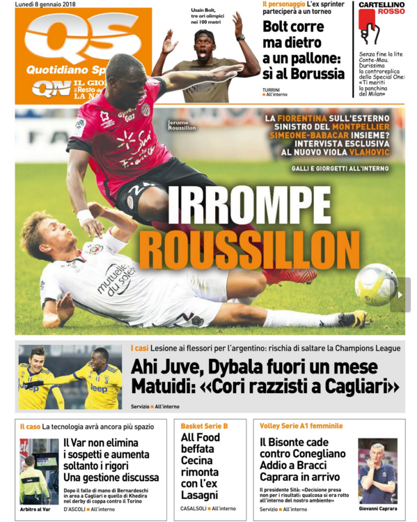 Queste le prime pagine dei quotidiani di Corriere dello Sport, Corriere dello Sport Stadio, Qs-La Nazione, Tuttosport e Gazzetta dello Sport in edicola: