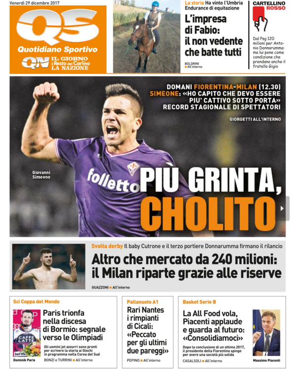 / 18:41Caputi: “Fiorentina in salute, contro il Milan credo sia favorita. Pioli sta facendo bene”