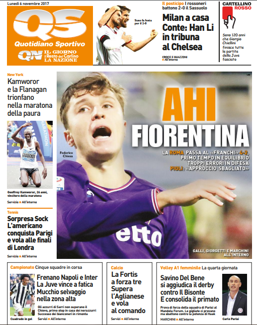 Queste le prime pagine dei quotidiani di Corriere dello Sport, Corriere dello Sport Stadio, Qs-La Nazione, Tuttosport e Gazzetta dello Sport in edicola questa mattina: