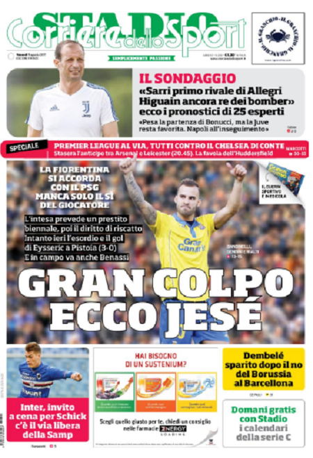 Queste le prime pagine dei quotidiani di Corriere dello Sport, Corriere dello Sport Stadio, Qs, Tuttosport e Gazzetta in edicola questa mattina:
