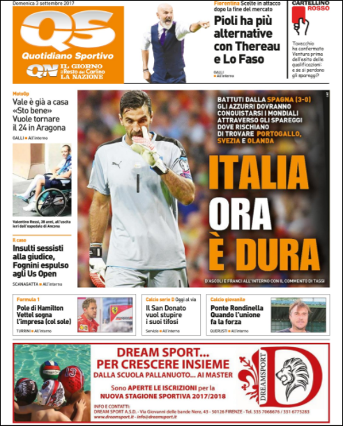 News/ 7:45Quotidiani: la prima pagina di Qs, Stadio, Gazzetta, Corriere dello Sport, TuttosportQueste le prime pagine dei quotidiani di Corriere dello Sport, Corriere dello Sport Stadio, Qs, Tuttosport e Gazzetta in edicola questa mattina: Quotidiani