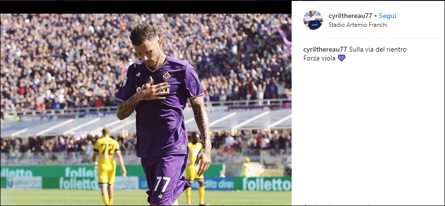 Un’immagine sul campo in maglia viola, mano sul petto e sul cuore. “Sulla via del rientro Forza viola ?”. Firmato Cyril Thereau. L’attaccante viola ha postato ieri in serata questa immagine con messaggio incluso su Instagram: calvario finito, il francese è pronto a tornare in campo. Ha saltato anche la trasferta di Ferrara, ma a Roma contro la Lazio ci sarà.