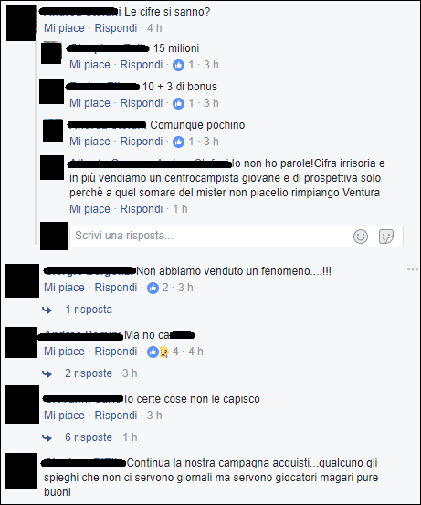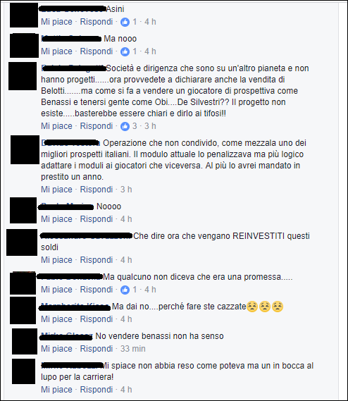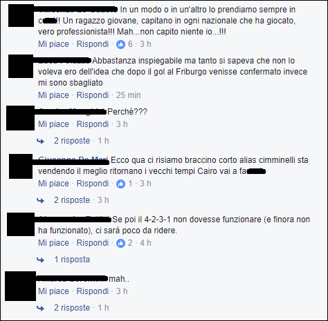 Una cessione che non è certo passata inosservata ai tifosi, quella di Benassi dal Torino alla Fiorentina. I sostenitori granata, infatti, non hanno preso bene il passaggio dell’ex capitano ai viola. Molti i commenti perplessi e molto critici sulla pagina ufficiale del Torino, sotto alla notizia del passaggio di Benassi in viola. Eccone alcuni: