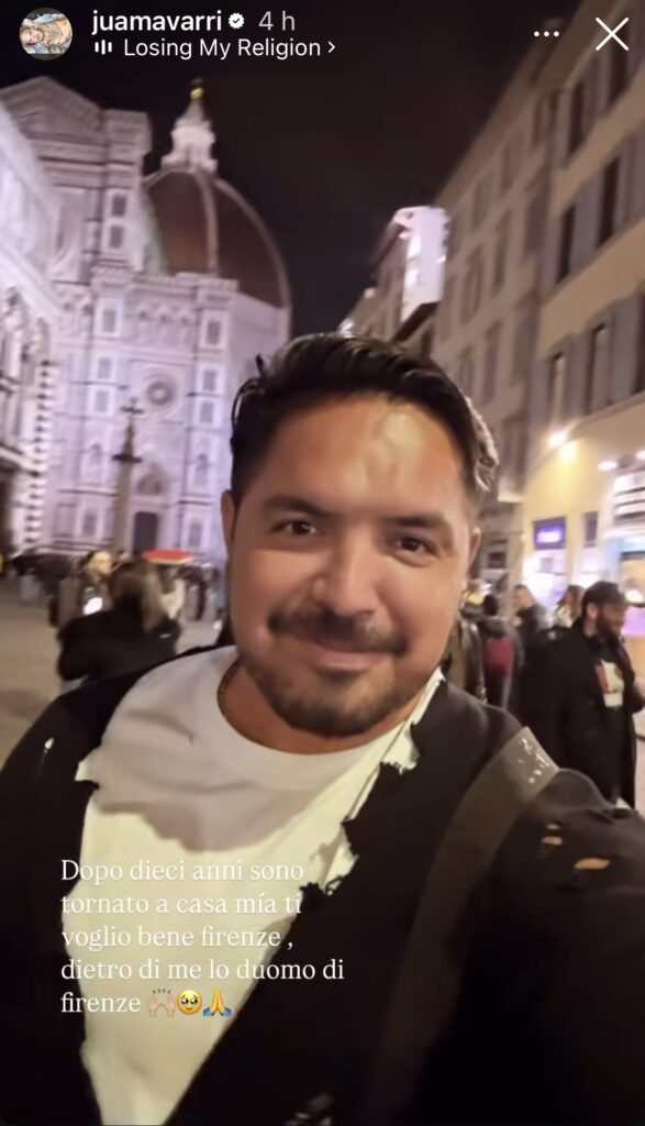 Juan Manuel Vargas è arrivato a Firenze. Il peruviano parteciperà al Pepito Day e su Instagram ha pubblicato una storia che lo ritrae davanti al Duomo di Firenze, con scritto: “Dopo dieci anni sono tornato a casa mia. Ti voglio bene Firenze. Dietro di me il duomo di Firenze”.