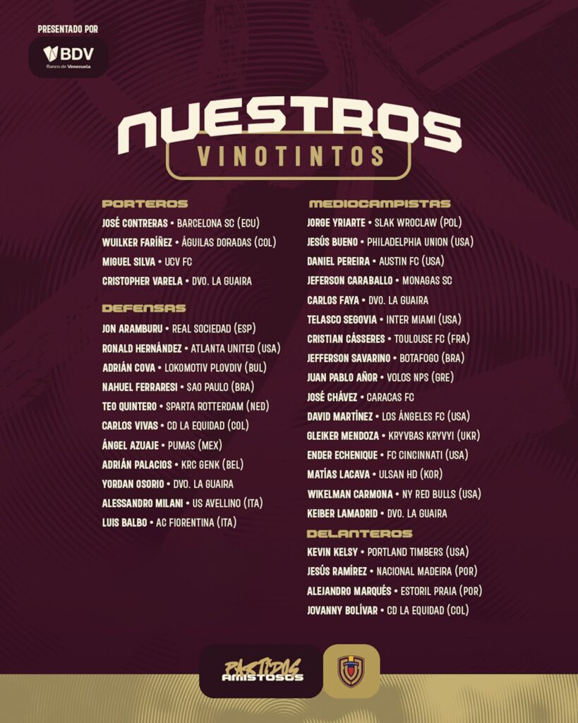 Il ct del Venezuela, Fernando Aristegueta ha diramato la lista dei convocati per le amichevoli di novembre. La Vinotinto affronterà Australia (14 novembre allo Shell Energy Stadium di Houston, in Texas) e Canada (18 novembre 2025 al Chase Stadium di Fort Lauderdale, in Florida). Nell’elenco figura anche il terzino della Fiorentina Primavera, Luis Balbo.